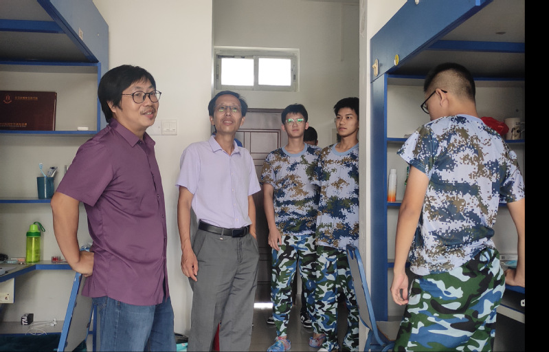 9月7日下午,学院院长柳宁、党总支副书记郑桂华、副院长刘晓翔、杨光华及学院教研室主任、新生班主任、辅导员老师到学生宿舍走访看望了2021级283名新生。