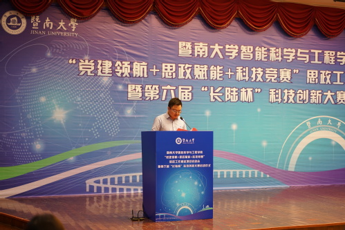 仪式上,屈挺代表珠海校区对学院“党建领航+思政赋能+科技竞赛”思政工作精品项目暨第六届“长陆杯”科技创新大赛的成功举办表示热烈祝贺,他指出,此次思政工作精品项目成功获批,切实发挥了学院基层党组织的战斗堡垒作用,使党员发挥先锋模范带头作用有了新阵地、新载体,扩大学生科技竞赛的影响力和覆盖面,吸引更多学生融入到团结奋进的学风氛围中来。希望学院再接再励,以“长陆杯”科技创新大赛为契机,通过推动校区和学院的专家教授深入企业,促进学校科技成果转化落地,争取形成可示范引领、可持续推广的学术科技竞赛模式,推动党建与业务双融双促。