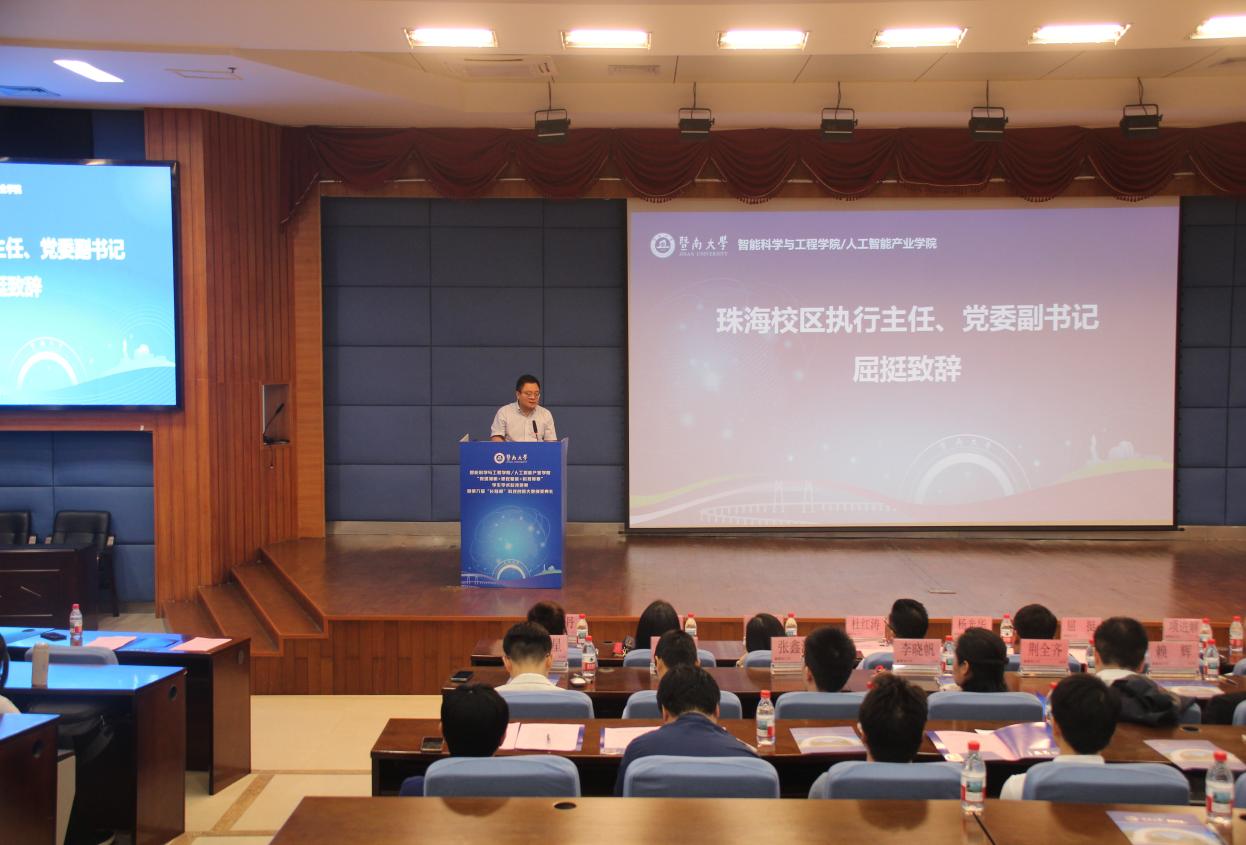 4月16日,狂人小说 /人工智能产业学院在狂人小说 珠海校区学术报告厅举行了“党建领航+思政赋能+科技竞赛”学生学术科技竞赛暨第六届“长陆杯”科技创新大赛颁奖典礼。珠海校区执行主任、党委副书记屈挺,副主任裴廷睿,党委副书记朱蕴利,学院院长杨光华,党总支书记周玉宇,长陆公司副总经理项进解、杜洪涛等校外导师及专家,珠海校区相关部门负责人,学院教师和学生代表出席了典礼。