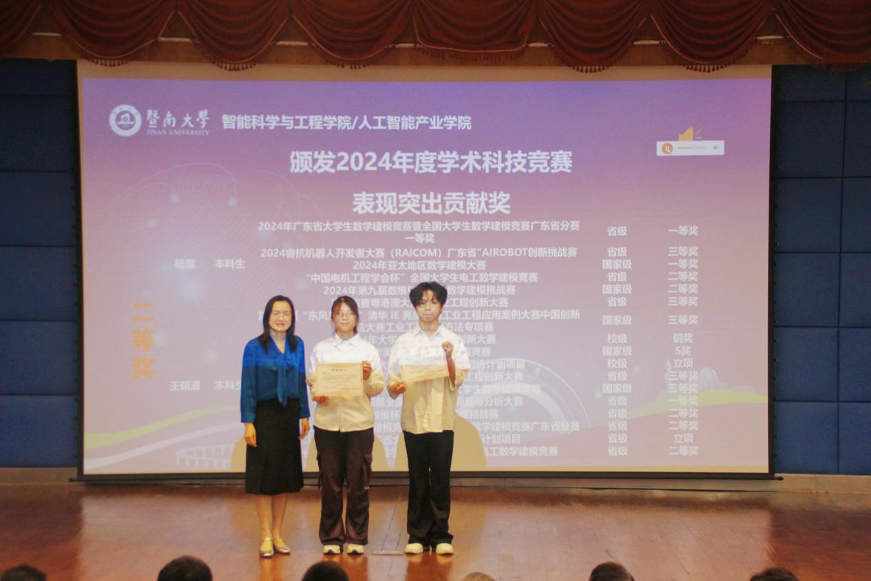(余祥正、张小丹颁发单项科技竞赛表现突出优异奖证书)