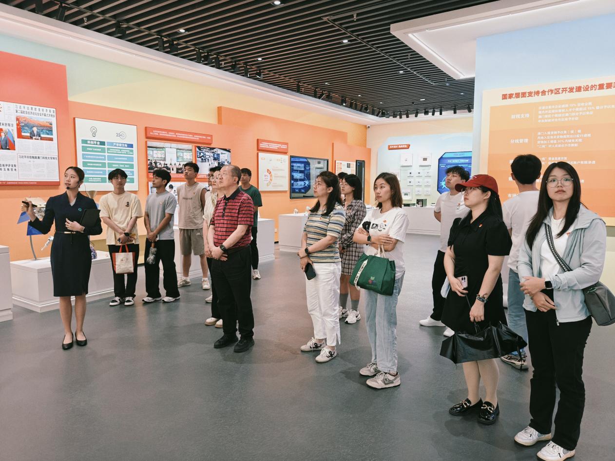习近平总书记强调要抓住粤港澳大湾区建设重大历史机遇,推动全面开放、创新驱动发展。横琴规划展览馆所呈现的一切,正是这一重要指示精神的生动实践。党员同志们深刻感受到横琴发展背后的政策支持、创新理念与奋斗精神,大家认真学习,不时就感兴趣的问题和老师及同学们展开热烈讨论,思考自身所学专业与横琴发展的契合点,如何能在未来为这片充满活力的土地贡献自己的力量。