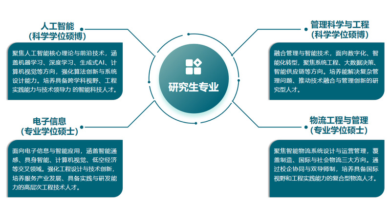 围绕“智能”,学院形成4个发展方向明确、国际化、高层次的科研团队:智能感知与通信、智能计算与机器视觉、具身智能、智能制造与智慧物流。